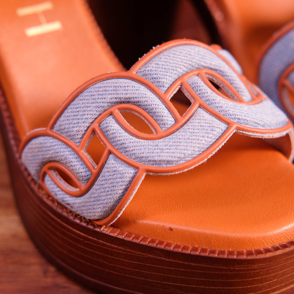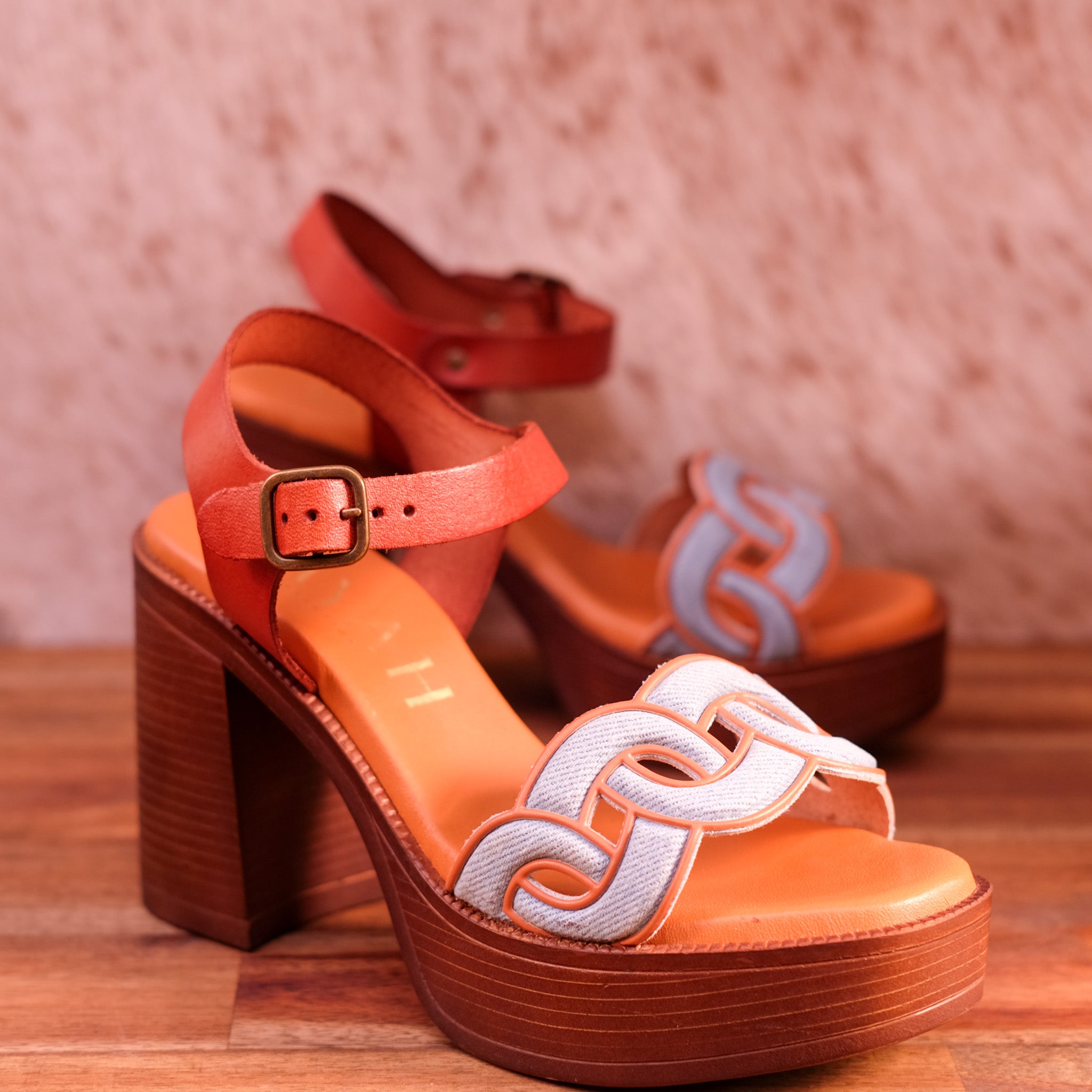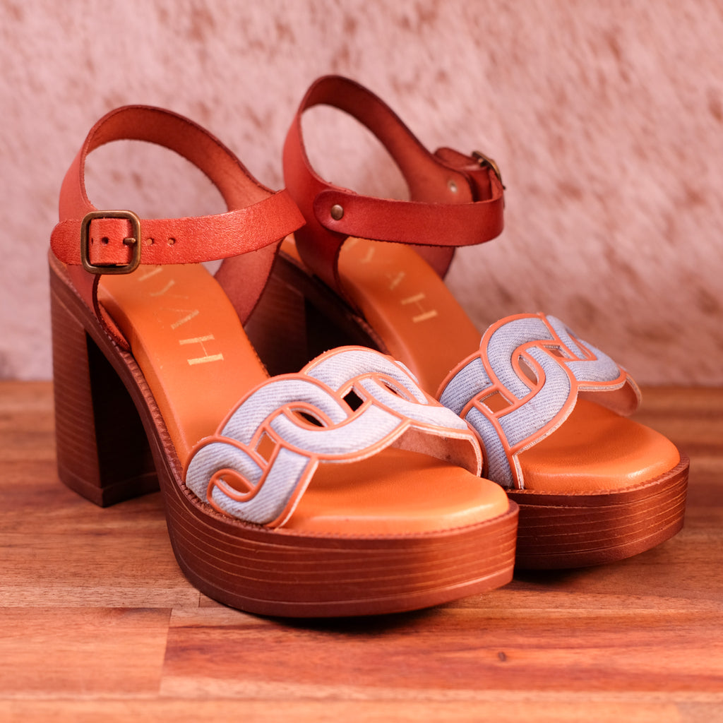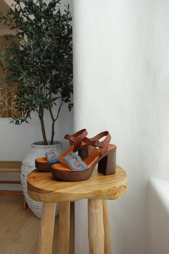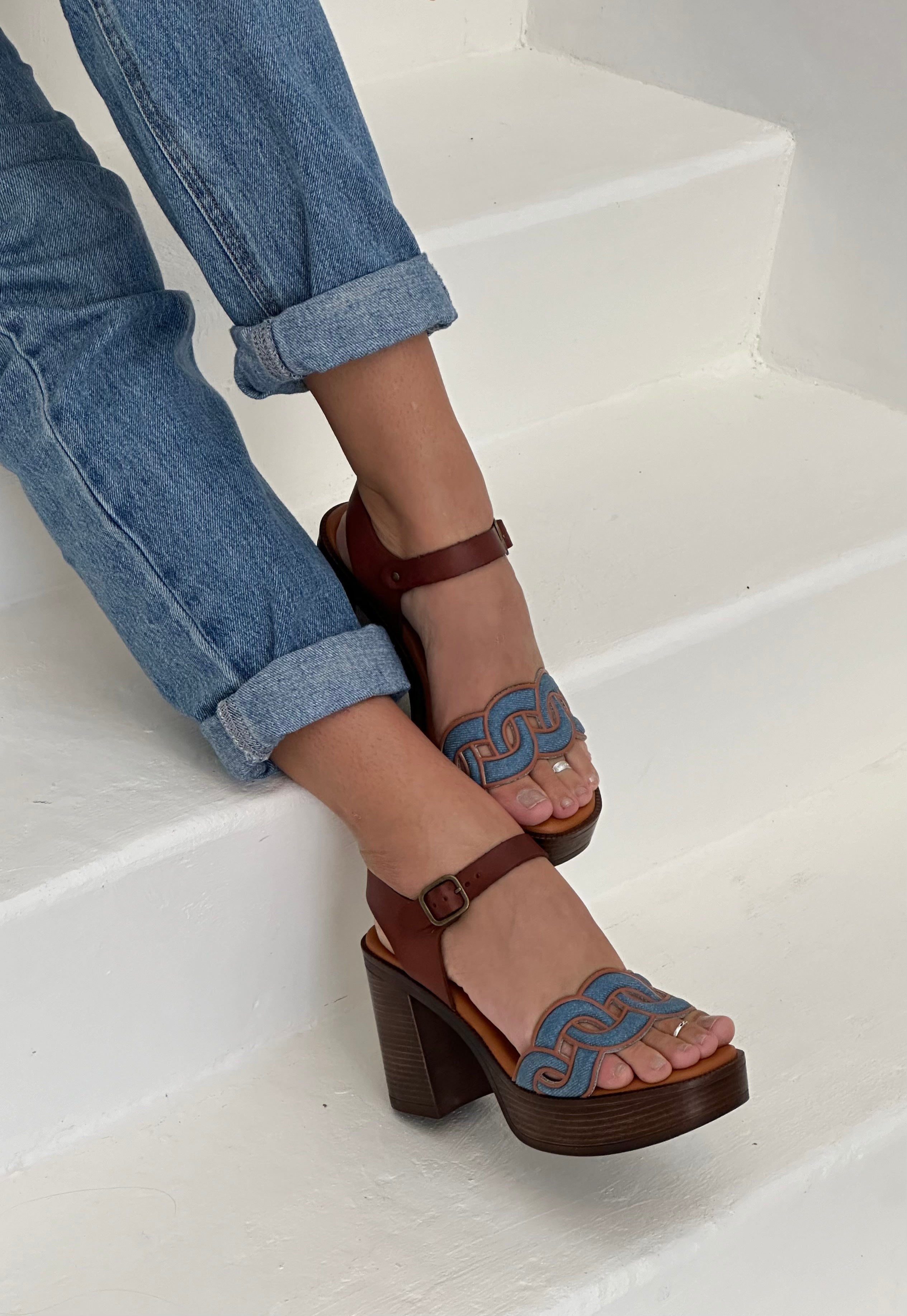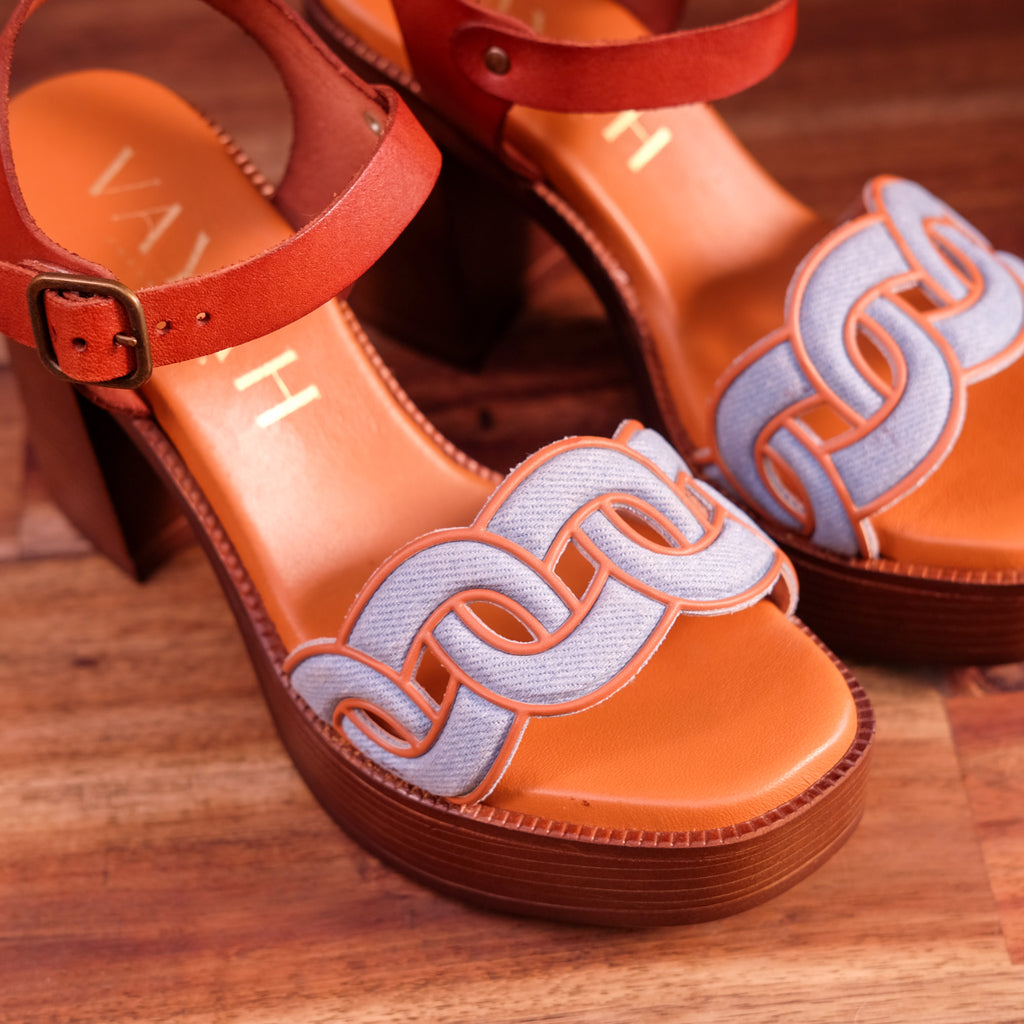 Vayah Collections is a new brand for us and we LOVE it! Made in Spain from the best quality leather, the tall heel is offset by the platform making these sexy ladies an all day wearable sandal.  They feature a super soft squishy inner sole that will feel like walking on a cloud. This particular style blends funky denim with the primo Spanish leather for a really great look.