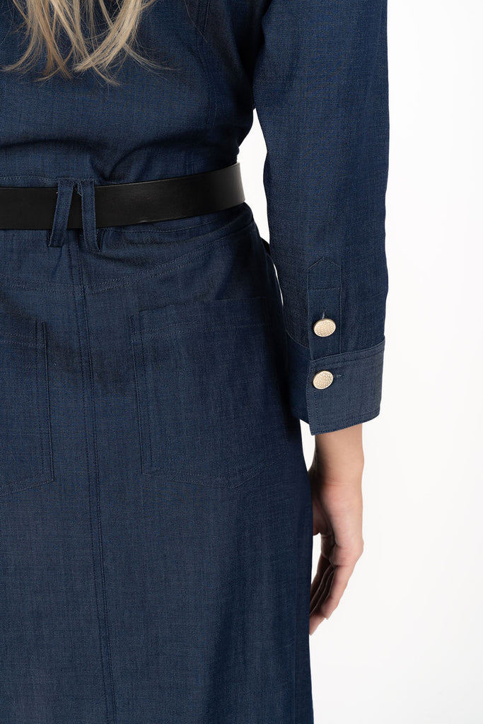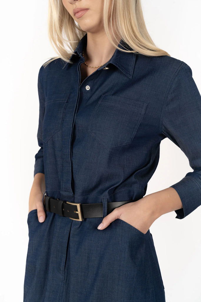 Jovi is the perfect mixture of comfort and sophistication, she really looks great cinched in at the waist with a classic. There’s a little extra fabric, designed to make her easy wearing - so adjust by moving the fabric around a little, to get the look just right. Jovi is a classic pocket denim dress that embraces smart - casual. We’ve teamed her here with our gorgeous collection of long boots!