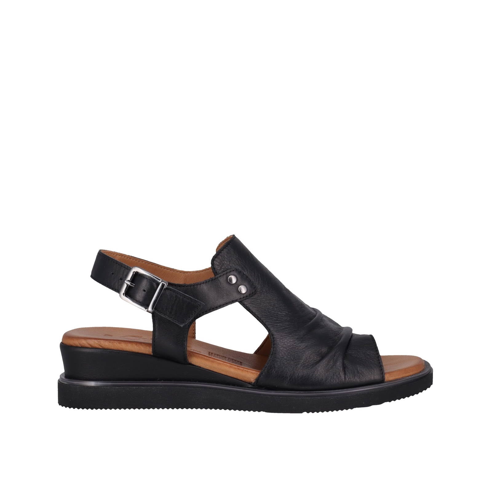 Step into style with the all-new Alfie sandal wedge. Featuring a wide, ruched leather upper and adjustable strap, it ensures a perfect fit. The soft leather insole and small wedge design provide comfort all day.