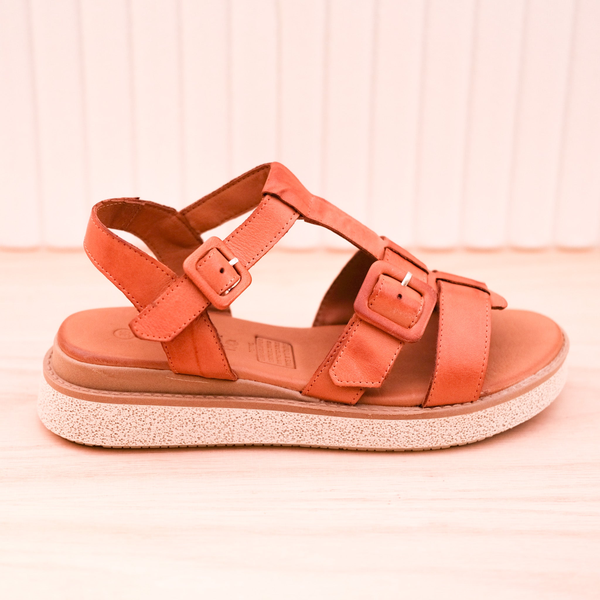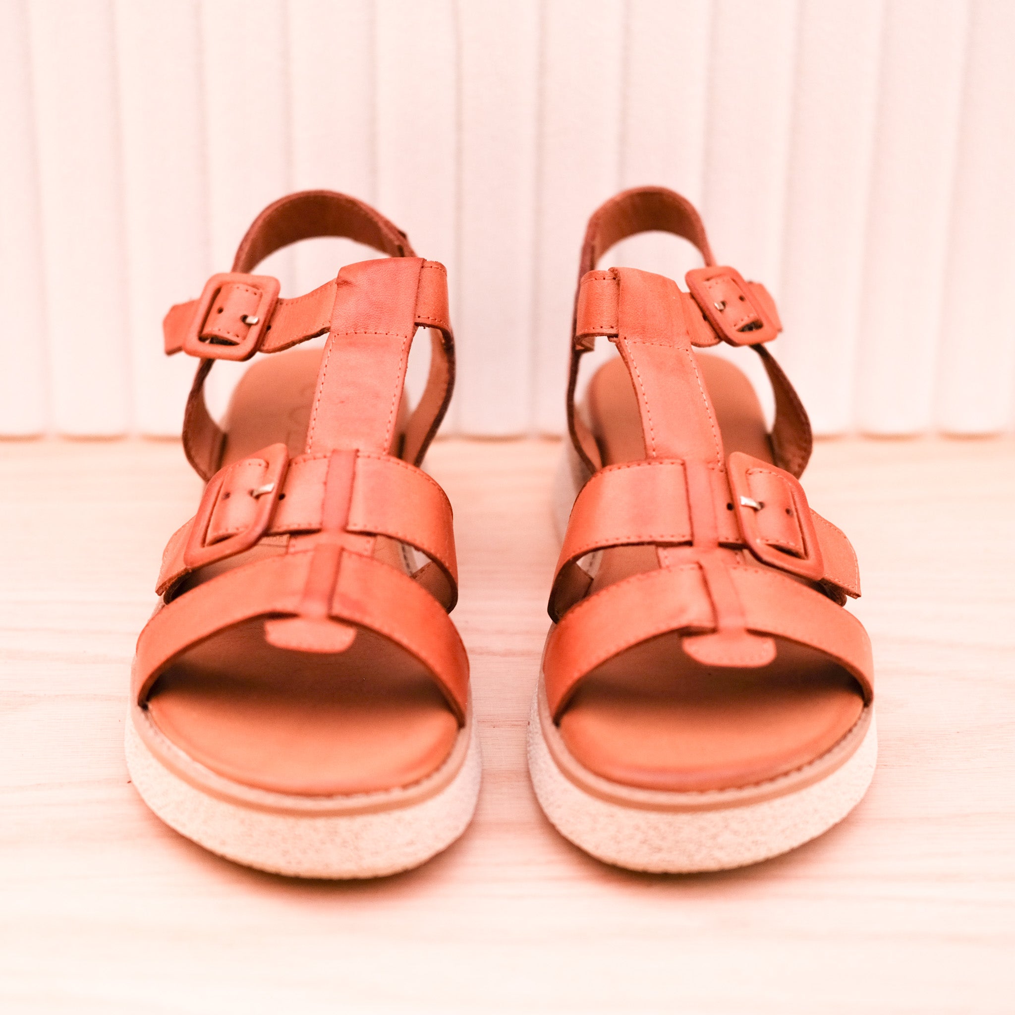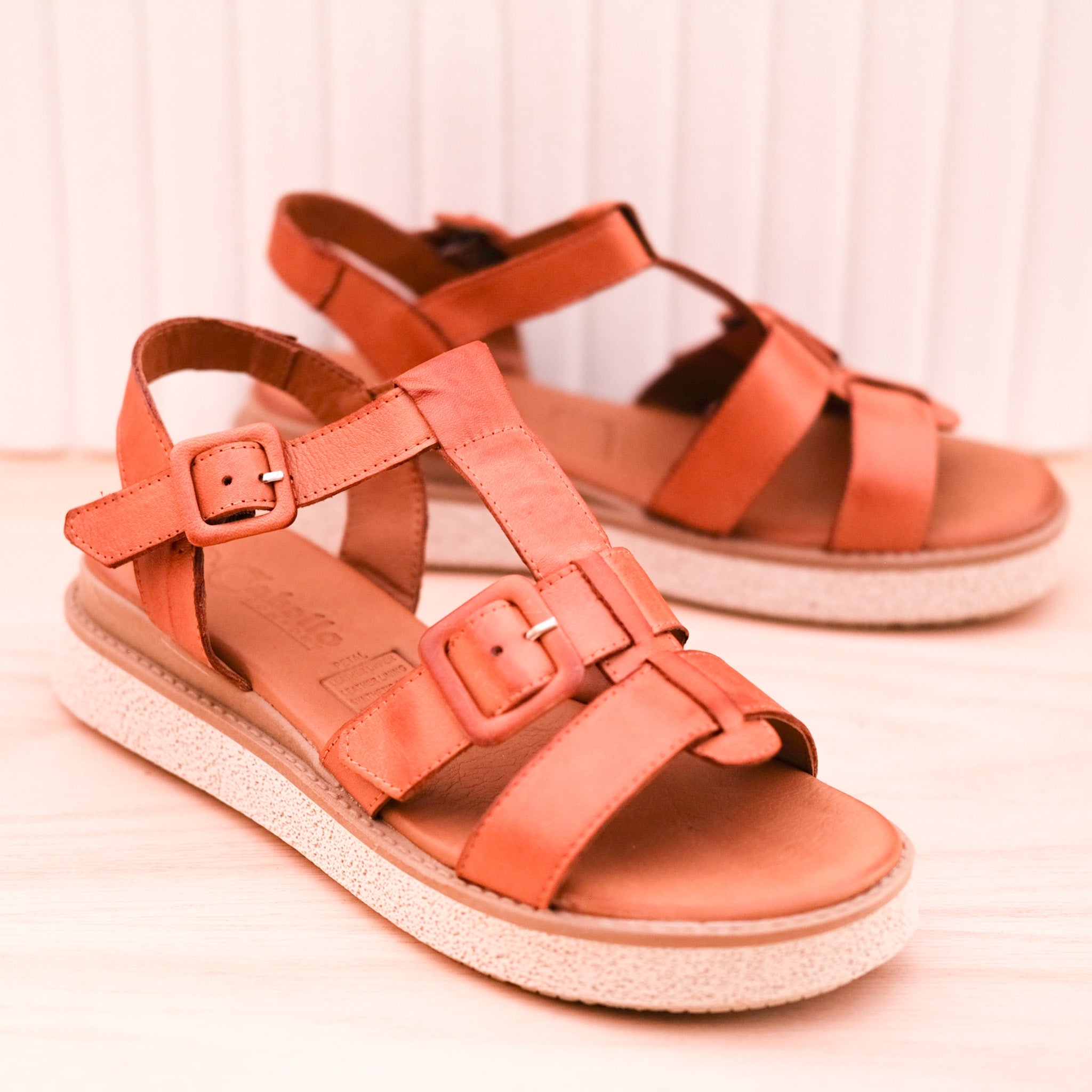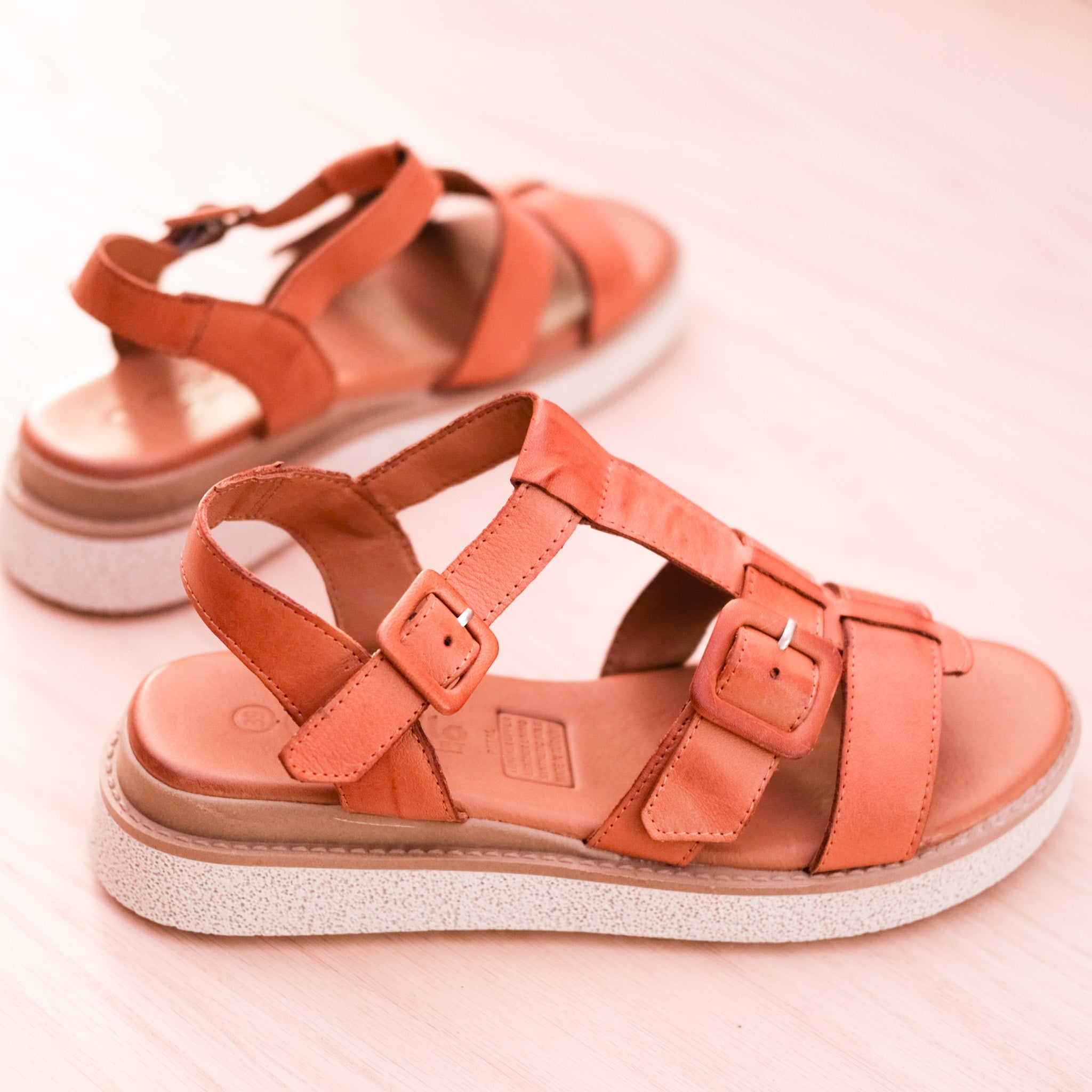 You will just adore Petal from customer favourites Cabello. Handmade in Turkey from the softest leather, these lovely sandals hug across the foot and secure behind with a stylish leather covered buckle. The footbed has a memory foam footbed inside that will keep your feet happy all day long. The outsole combines a leather wrapped midsole and a rubber outsole for super comfort all day long. The heel raises to a comfortable 3.5cm on the wedge sole. Available in tan.